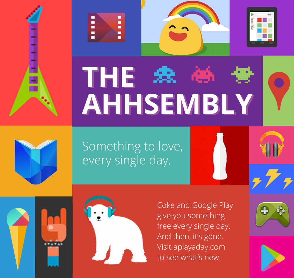 Google Play product campaign in partnership with Coca-Cola. Create uplifting moments by combining great taste, enjoyable content and meaningful connections.